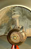 The brake shroud may have become bent, make sure that it clears the disk on all sides, if it is to close to the disk just bend it back. Repeat this procedure on the other rear strut.