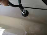 At this point I tried to thread the antenna back into the motor assembly. Luckily I have a remote control for the radio, so I was able to turn it on and off from the back of the car. If you don't have a remote, you will want to have someone in the car to operate the radio. As you can see from the picture, the antenna would not lower all the way. It would stop with about 9" still sticking out. After about 5 minutes of trying to get it go all the way down, I realized that the plastic strip that broke off must still be in the motor assembly.