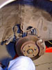 The brake shroud may have become bent, make sure that it clears the disk on all sides, if it is to close to the disk just bend it back. Repeat this procedure on the other rear strut.