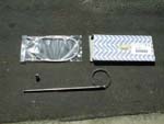 At this point you should have the entire assembly out of the compartment. The black wire that runs to the top of the mast is the signal wire from the antenna. This is attached to the body panel by a small clip, remove it with the pliers and disconect the wire (at the red plug in the picture). At the bottom of the antenna there is a drainage hose, just be carefull not to put any kinks in it.