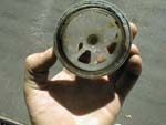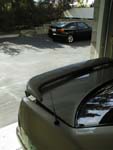 At this point I tried to thread the antenna back into the motor assembly. Luckily I have a remote control for the radio, so I was able to turn it on and off from the back of the car. If you don't have a remote, you will want to have someone in the car to operate the radio. As you can see from the picture, the antenna would not lower all the way. It would stop with about 9" still sticking out. After about 5 minutes of trying to get it go all the way down, I realized that the plastic strip that broke off must still be in the motor assembly.